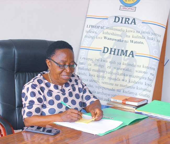 Lindi Women Paralegal Aid Centre, Acronyms (LIWOPAC) whose vision is to strive for realizing a concretive reputable society that observes and respect women and children’s human rights. It’s a non-governmental organization founded in August 2001, with the aim of defending the rights and position of women and children as a vulnerable and marginalized group in Tanzania societies particularly Lindi region.